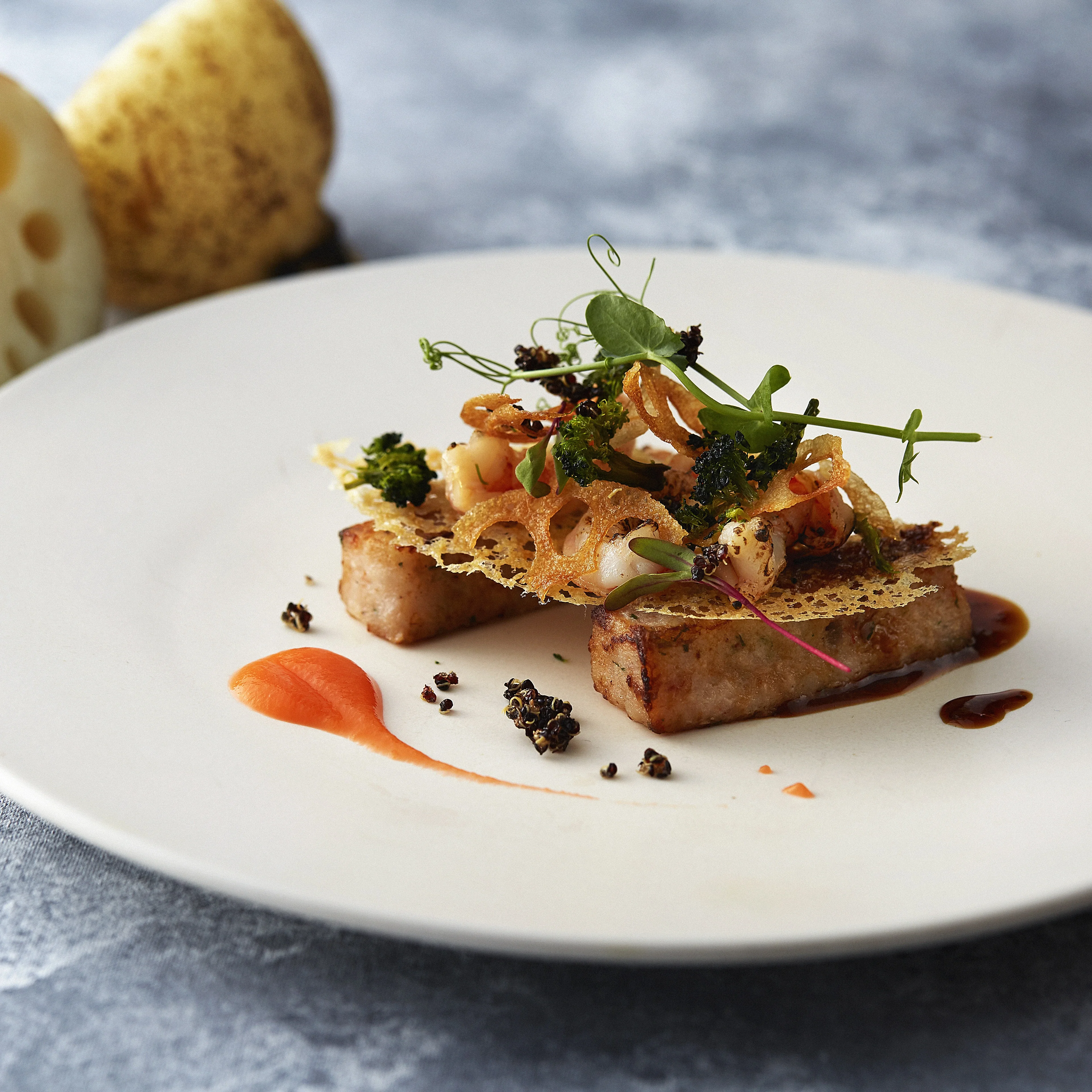 「遠州の恵みを味わう四季折々の優しいフレンチ」をテーマに浜名湖で採れる豊富な食材をはじめ地元の食材を自由な発想で唯一無二の一皿へと昇華。浜名湖八景の一つに指定される絶景を窓外に眺め豊かに広がる料理をお楽しみください。