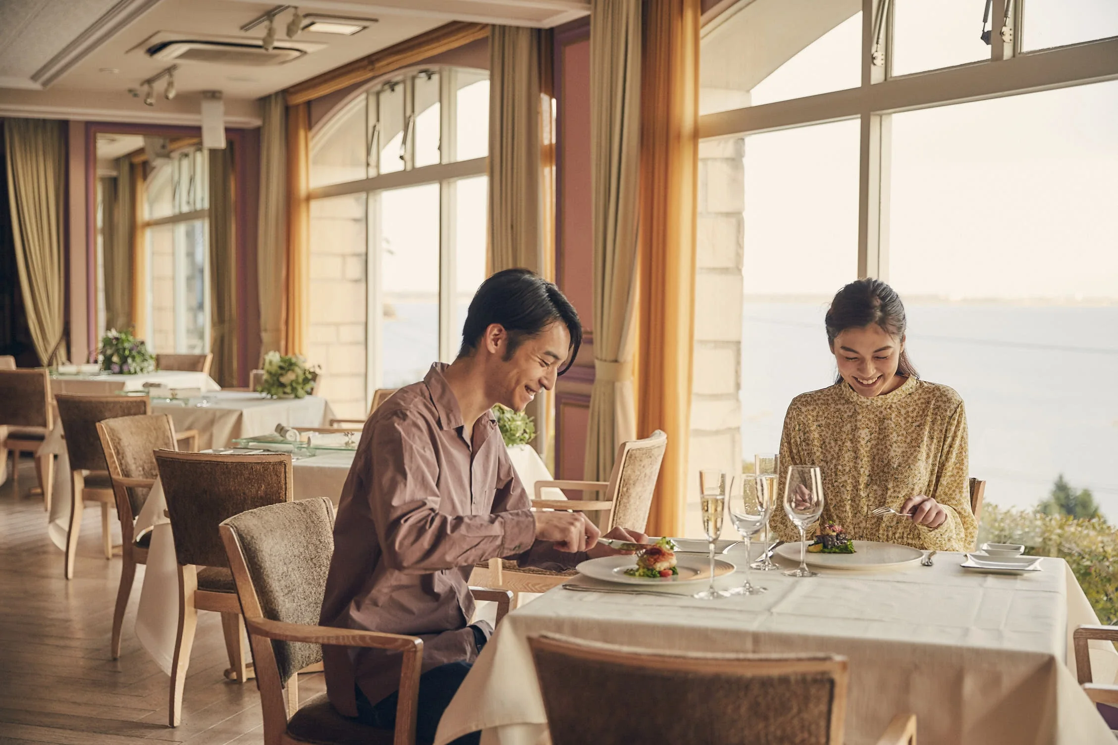 当館では、全4室がレイクビューをお楽しみいただけます。浜名湖の自然と夕日に沈むロンチックな雰囲気まで、贅沢に浜名湖の風を感じながら非日常空間をご堪能ください。お料理は浜名湖や近海で水揚げされる魚介、地元のお野菜にとことんこだわった特製フランス料理をご用意。そんなこだわりのお食事を浜名湖の大パノラマを眺めながらダイニングレストランにてお召し上がりいただけます。
